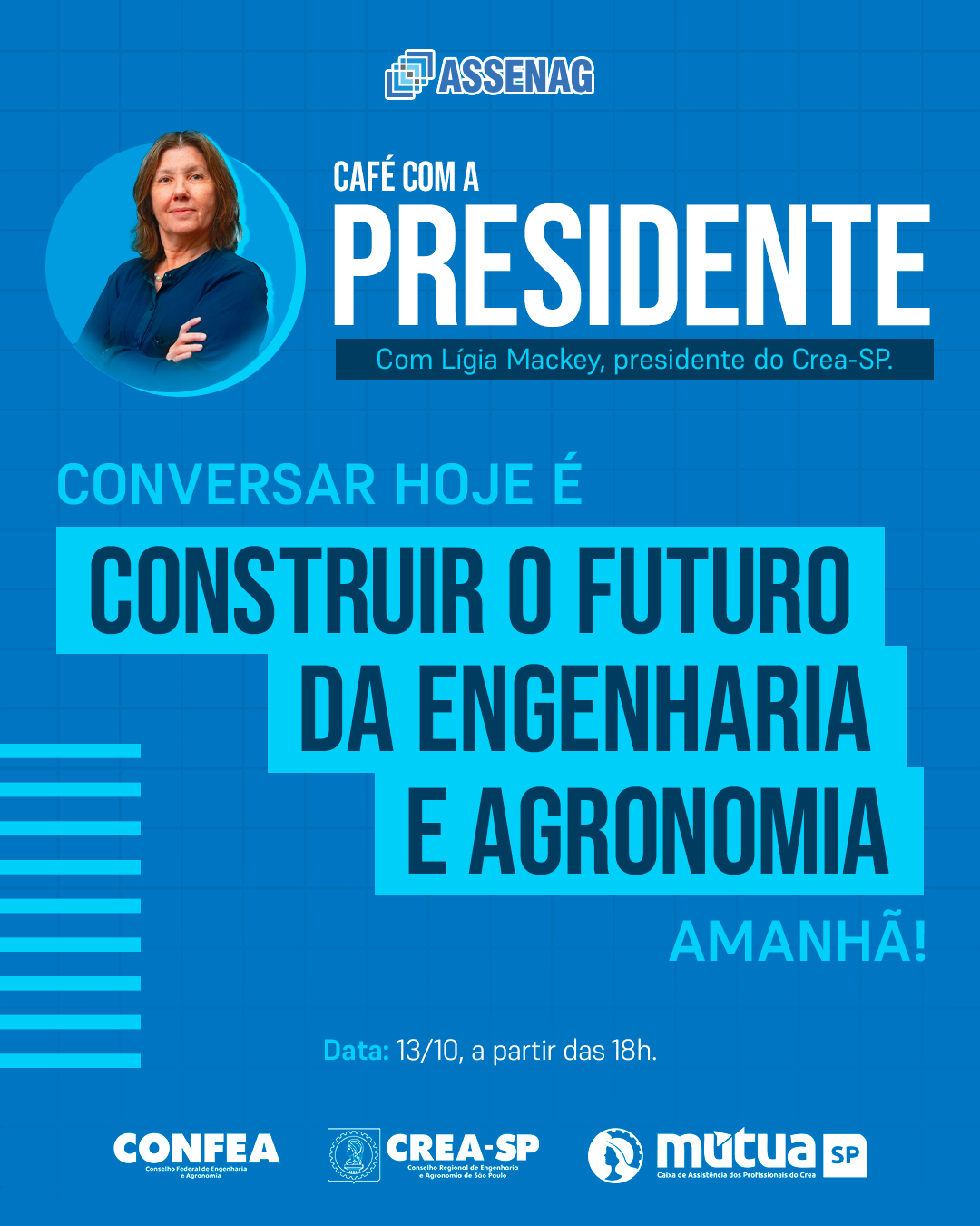 ⚠️ Últimas vagas para “Café com a Presidente”, um encontro especial com Lígia Mackey, engenheira civil e presidente do Crea-SP, que acontece.