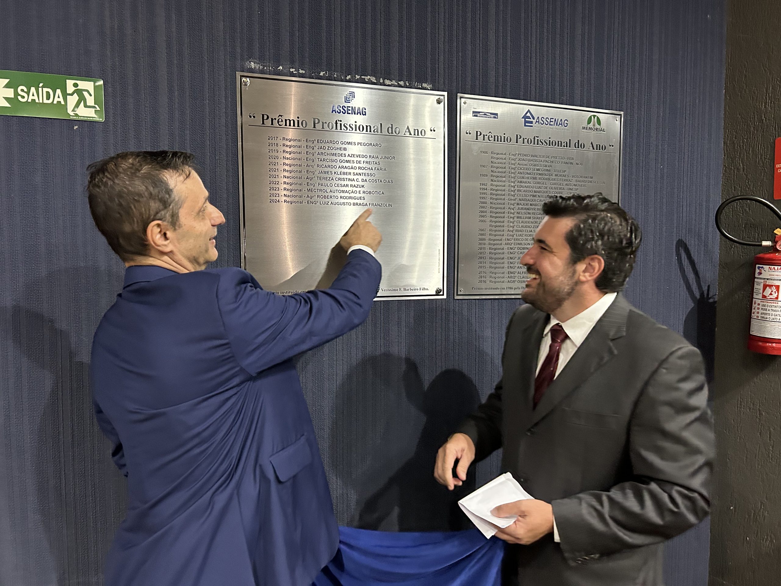 “Nossa cerimônia é um momento de reconhecimento dos feitos profissionais desses dois grandes engenheiros: o vereador Segalla e o presidente Vinicius”, comenta o engenheiro civil e presidente da associação, Luiz Augusto Braga Franzolin.
